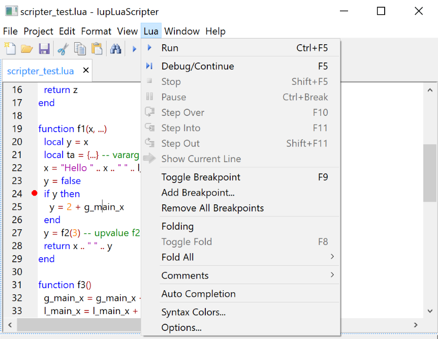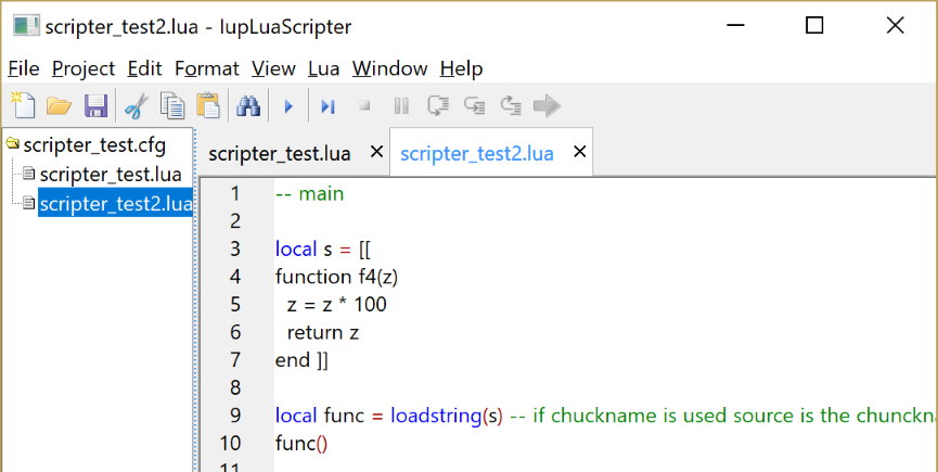 Lua code that are run from strings, instead of files, can also be debugged. But you can only set breakpoints when you step in the string and its contents are displayed in a new document. This temporary document is automatically closed when the debug is ended. (since 3.23)
